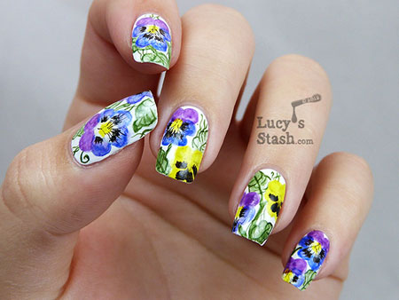 Самый последний и с нежными розовыми бантиками маникюр просто супер. Мне очень нравится. А с анютиными глазками кажется очень наляпистым. Слишком много цветов.