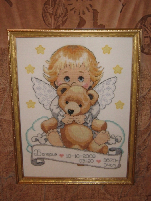 Я заметила, что сейчас становится модным вышивать крестом метрики - для деток, свадебные. Для деток - это с именем, с датой рождения, вес, рост. Даже видела, что продаются уже ну как бы заготовки - только с местом, чтоб вшить данные. Есть очень симпатичные варианты. Как пример: Вложение:
