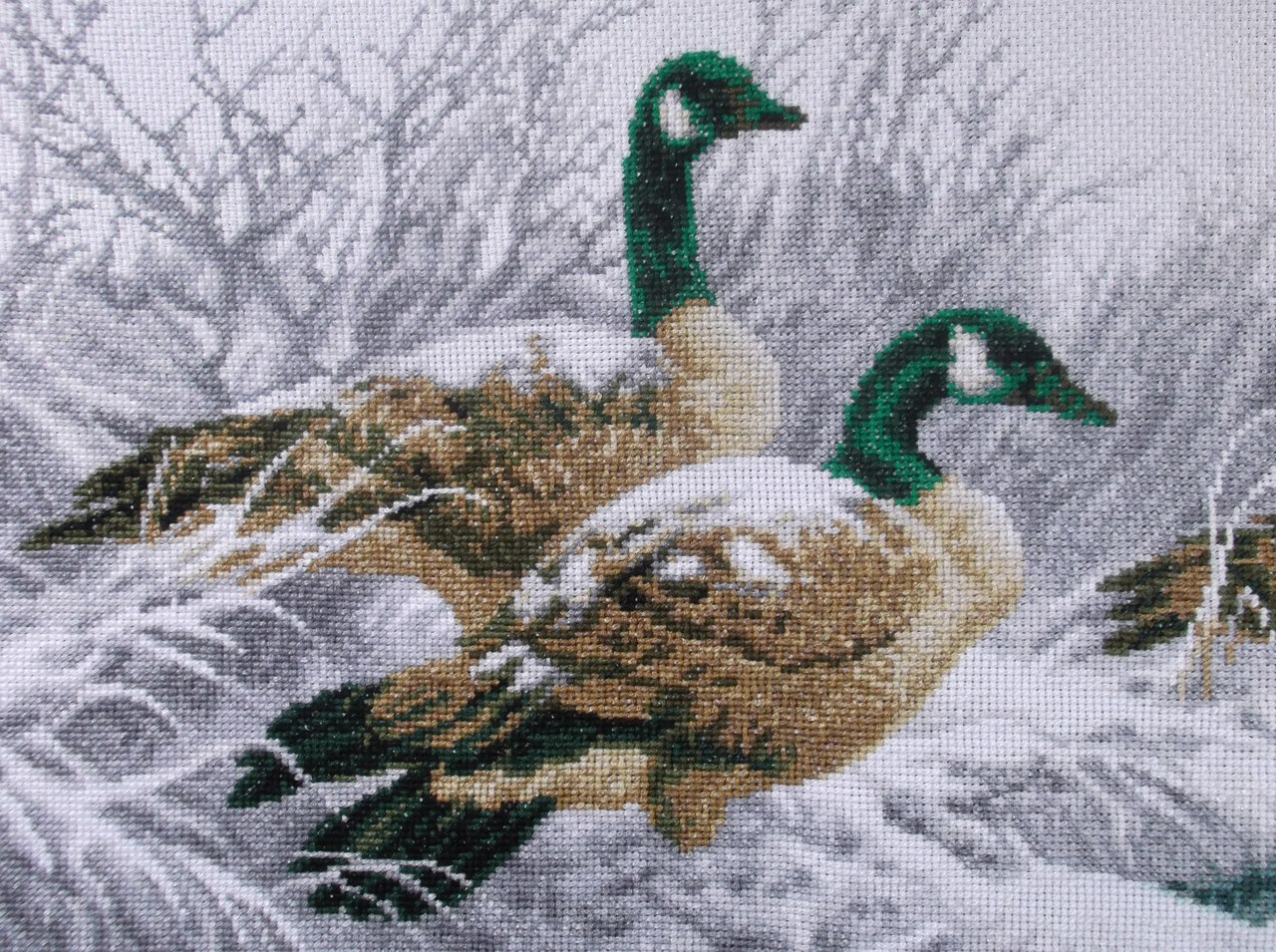 Танюшик писал(а): А я уже могу похвастаться завершением своей вышивки - "Гуси зимой" от Чарівна мить. Жаль только, что фото не передает полностью цвета и блесточки на канве. А так я очень довольно своей работой. 5 месяцев любимого хобби - и вуаля: Гуси как живые! очень реалистично! И всего лишь пять месяцев! Для такой картины это очень быстро!