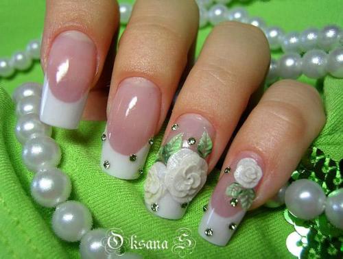 Если бы я делала объемный маникюр, то только на двух, а то и на одном ногтике, ну и на какое-то очень большое торжество, на свадьбу к примеру. Вот красиво сделано