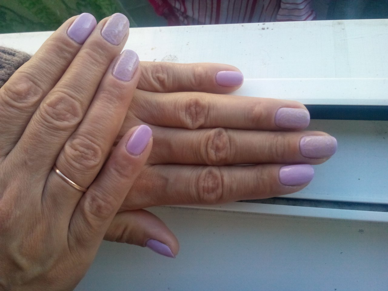 Недавно наращивала, треснул - пришлось снять( хотя очень нравилась и форма и был обычный френч)