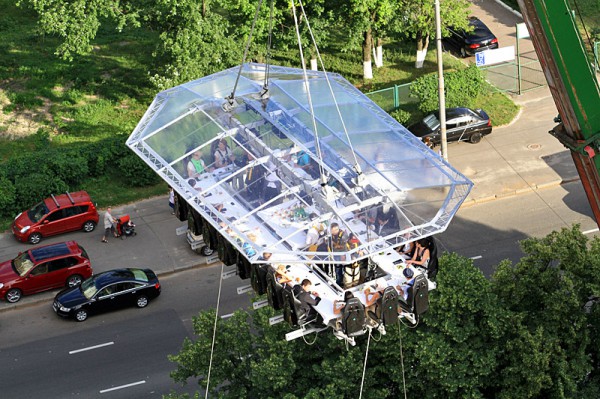 • Ресторан Dinner in the Sky – город Киев Ну и конечно, как же этот список без ресторана в небе. В этом ресторане вы сможете пообедать на вышине 50 метров. На платформе помещаются 22 человека, для каждого оборудовано специальное кресло с 6-ю ремнями безопасности. Заказать ужин в небе может любой желающий, еще радует тот факт, что вы можете выбрать любую точку в Киеве над которой должна будет «зависнуть» платформа с людьми, официантами, вкусной едой и напитками.