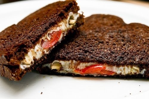 Очень вкусный итальянский бутерброд – гриль с сыром, просто невероятный завтрак, приготовьте не пожалеете. Нужно взять 4 куска черного хлеба, каждый из них намазать тонким слоем маслам с двух сторон, затем обжарить на сковороде, положить помидор, сыр, шампиньоны нарезные пластинками, полить соусом песто, накрыть вторым куском хлеба, после обжарить ан сковороде с двух сторон