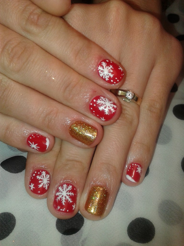 Вот еще симпатичный маникюр, думаю такие снежинки можно и дома самому нарисовать.