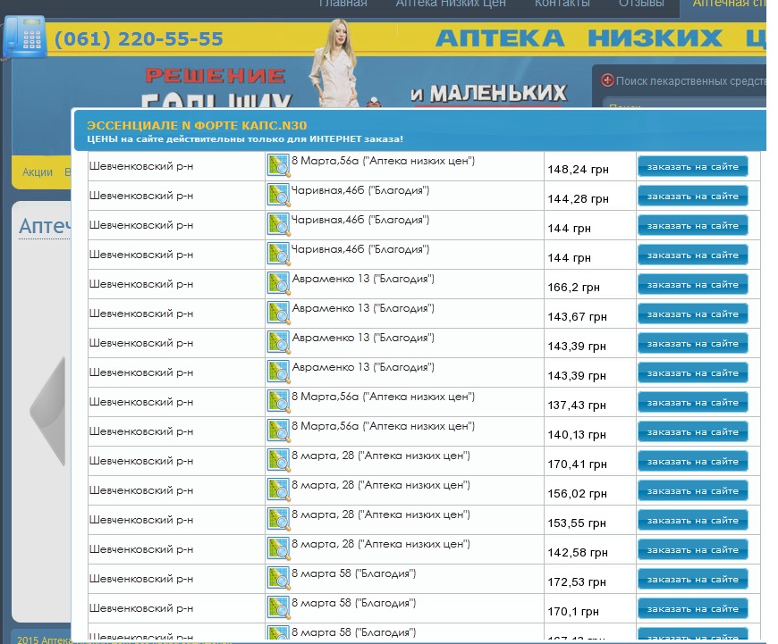 Аврора писал(а): Так и набирать, аптека низких цен? Ну да Вот сайт: ссылки на форуме запрещеныТут выбираете свой город ,а дальше уже вбиваете в поиск лекарство необходимое (открывается длинный список аптек Вашего города) и Вы уже смотрите ,где выгоднее сделать заказ (важно ,что делая заказ, забирать будете его именно в той аптеке,которую выбрали по цене).А вот доставкой аптеки на дом я не пользовалась и не знаю платно это или бесплатно даже.