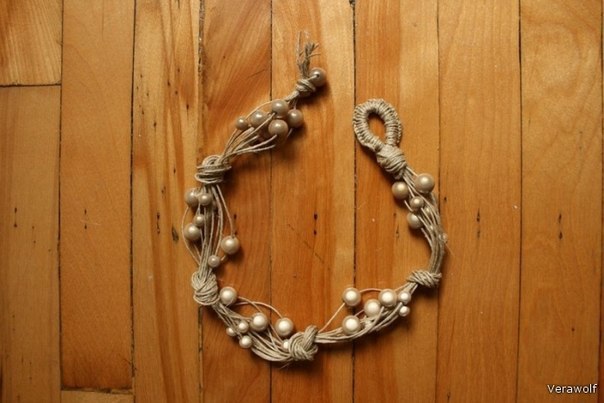 Очень нравятся украшения такого плана, их легко сделать своими руками, нужно только по 20 малых и средних жемчужин, 7 нитей длиной 150 см Вложение: