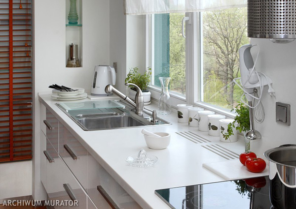 Мне очень нравится мойка или рабочая зона у окна. Только это возможно в новых дамах, в наших панельках такое сделать проблематично. У подруги в новом доме рабочая зона у окна. Так удобно! Может просто уже все свое опостылело...