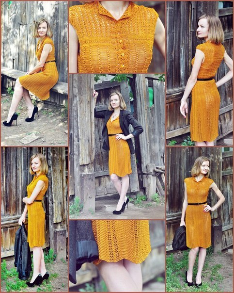 а мне из последних трех понравилось среднее - серое зимнее платье. Мне такие очень нравятся. А еще мне очень понравилось это платье. Или точнее сказать весь образ в целом. Очень гармоничное вышло сочетание оранжевого вязаного платье и черного жакета (классно еще будет смотреться, если этот жакет будет кожаным).
