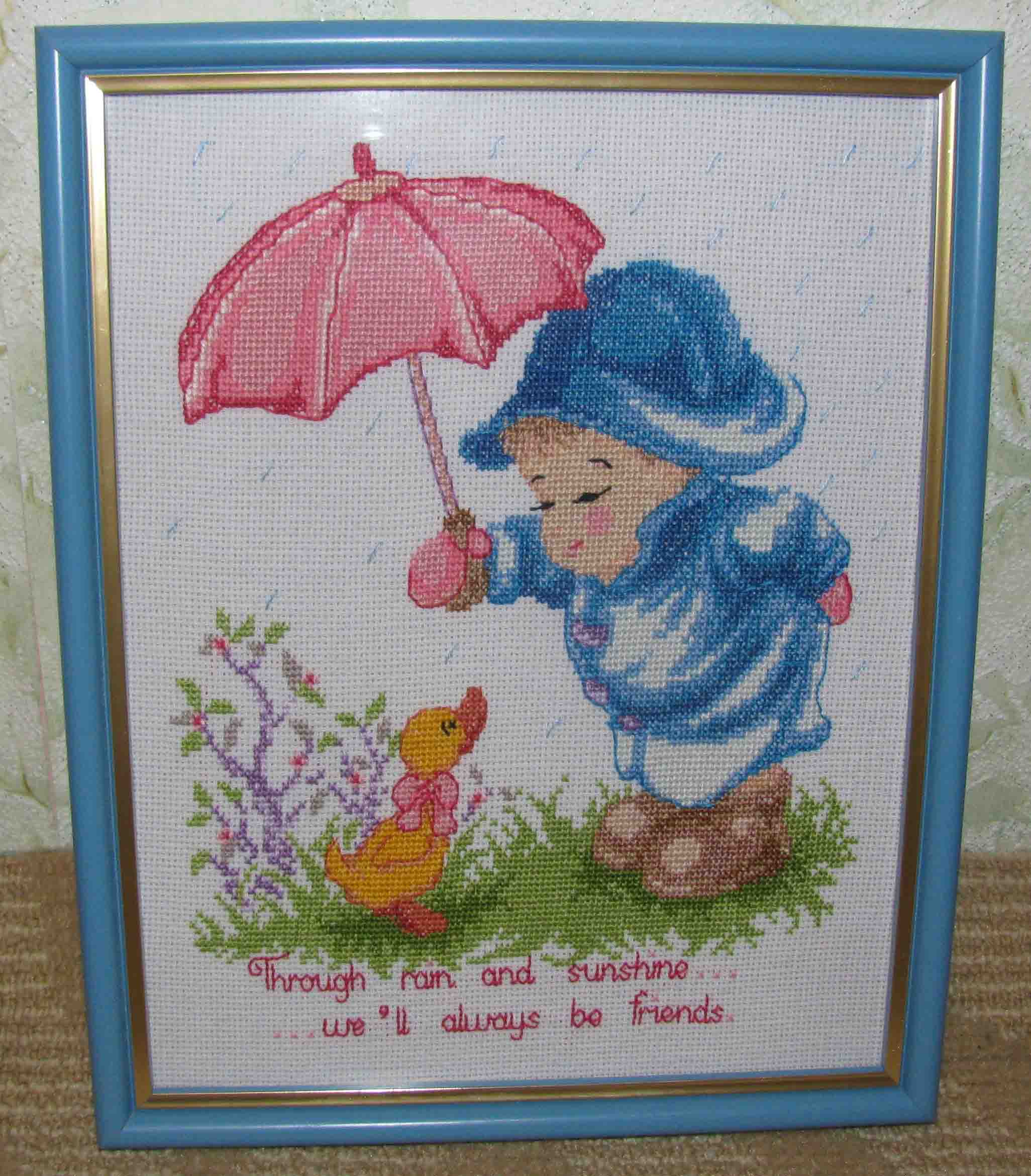 Аврора писал(а): ptenchik123 писал(а): Аврора писал(а): Какая прелесть))) Очень красивая, Вы давно уже вышиваете? да, давненько, только времени нет, одну картинку, так мучала год, а эту за месяц вышила  Картину целый год вышивали А что за картина? Вот эту мучала целый год, была загружена работой, вышивала по вечерам.. Through rain and sunshine... ... we'll always be friends. Несмотря на дождь и солнце... ... мы всегда будем друзьями. И то травку не правильно вышила. Схема была на английском, не повычитывала нормально, а когда вышила и пришла в магазин за другими нитками, то девочка-продавщица мне объяснила.Чтобы она выглядела более натурально, была рябой, то надо было взять 2 нитки в иголку разных цветов, а я вышила одним..