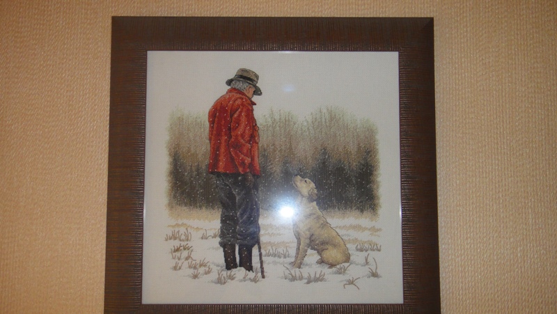 Ну разве что носки крестиком заштопаны)))) Шить я катастрофически не люблю, поэтому об сорочке и штанах ему остается только мечтать! Хватит с него подушек и картин))))