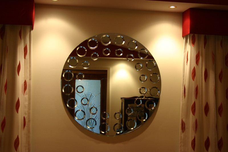 Зеркало сделано очень оригинально. Мне нравится. Из витражей для окон выбрала бы последний вариант. Я такого узора еще не видела и мне очень нравится.