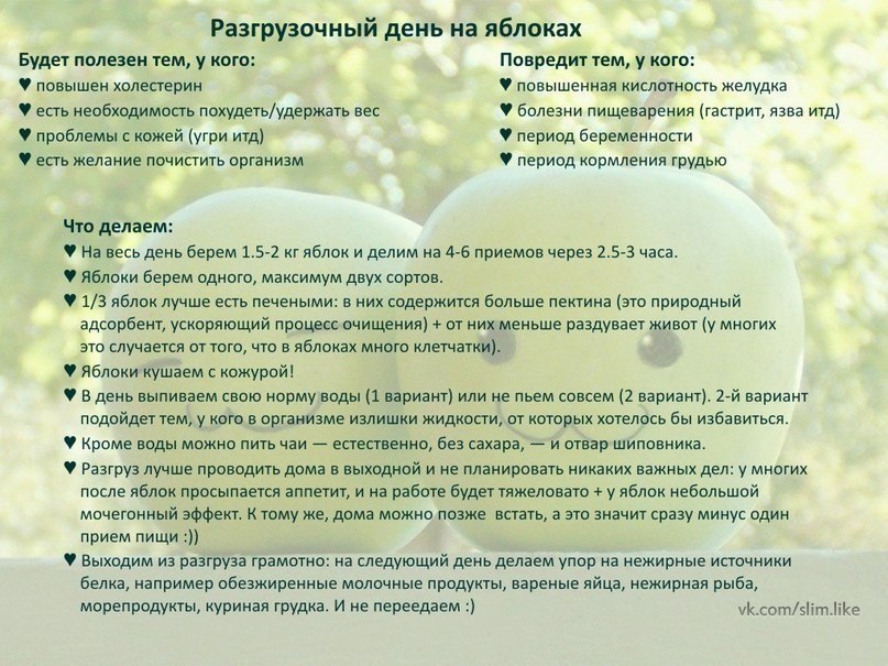 Я читала, что многим нравится устраивать разгрузочные дни на яблоках, мне так себе, очень голодно получается, но возможно кому-то подойдет