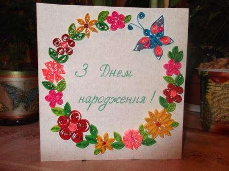 Эту открытку в стиле квиллинг я сделала сестре на день рождение:
