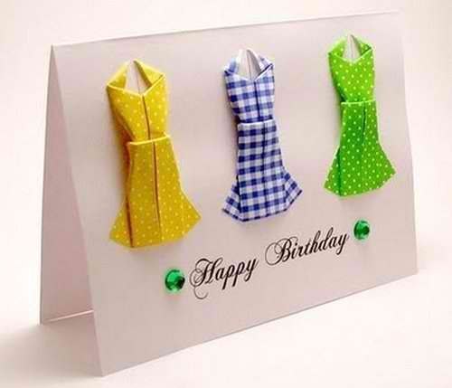 В стиле квиллинга трудновато открытки сделать. А вот эскпресс-открытка с украшением в виде оригами-платья делается намного проще.
