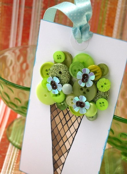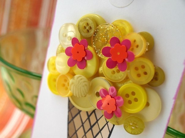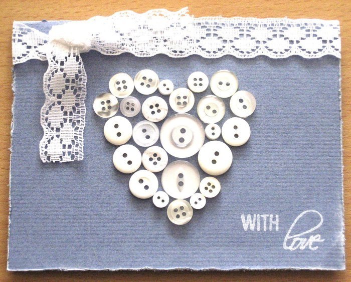 Классные открытки можно сделать с помощью пуговиц и клея, вы только взгляните Вложение:
