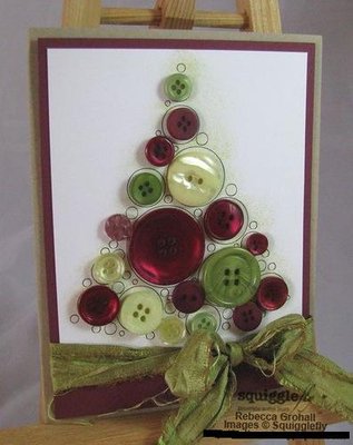 Как вам такие новогодние открытки с елочками с пуговиц? Мне особенно понравилась та, которая с стразами -ярко и блестяще, по праздничному.