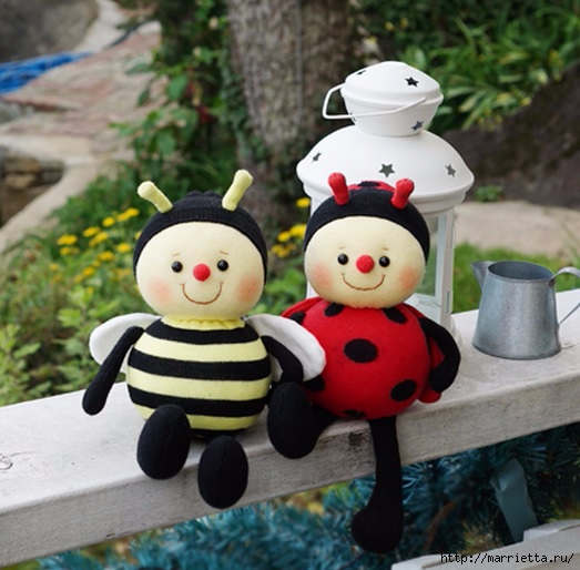 Посмотрите, что я нашла - такая прелесть!!! Жаль, мастер-класса нет. Но вообще это по ходу с носков, догадаться как сделать в принципе можно. Я б от такой пчелки не отказалась)))