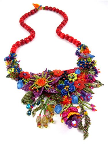 Сколько труда и бисера вложено в такое украшение! Но оно совсем не в моём вкусе, такое бооольшое, что его только одевать нужно при черезчур открытом декольте:))) да и по цвету не универсальное...я бы не носила...хотя если бы висюльки были короче, и как-то переплетены между собой, то возможно было бы ничего:)