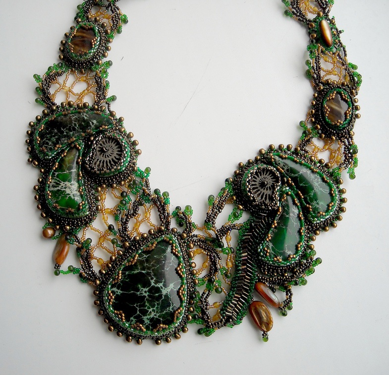 зеленое с камнями - красивое. Но это уже не украшение из бисера, это украшение из абалденной красоты камней )) бисер тут так, чисто для связки