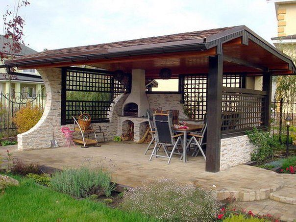 Софья писал(а): А я мрію біля свого будинку мати ось таку альтанку. Періодично відкриваю це фото, дивлюся на нього та мрію...  Показала його чоловіку, на що той відповів, що нам до такої альтанки ще довго... Тому й залишається мені тільки мріяти... Такая альтанка недешево обойдется. А не пробовали сделать что-то похожее самими? Можно красиво сбить из досок, а гриль сделать самим. Может, не так красиво получится, зато интереснее будет. Мы много чего на даче делаем своими руками.