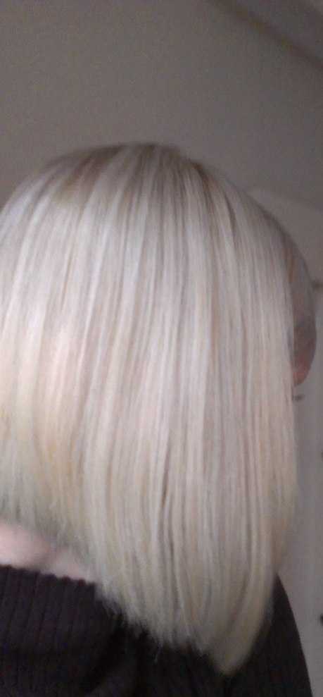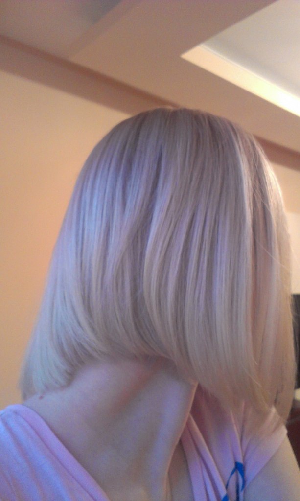 Я решила перейти с 10го уровня на 9 уровень, потому что корень,осветленный краской,не дотягивает до 10 уровня. Корень осветляли суперосветляющей серией Lakme (T-Lab осветлял получше),длину начали тонировать Lakme Chroma 9/20 на 3 процентах плюс часть Lakme Gloss 00 (глазирование,если я не ошибаюсь) ,но пришлось тут же смывать краску,я начала синеть. Потому мы просто,смыв краску, нанесли мне Gloss 00 ,немного натурального шоколадного(какао вроде) пигмента Lakme и немного 9/20. Волосы,скажем так,оживились,подпитались. Но через две недели краска опять улетучилась.