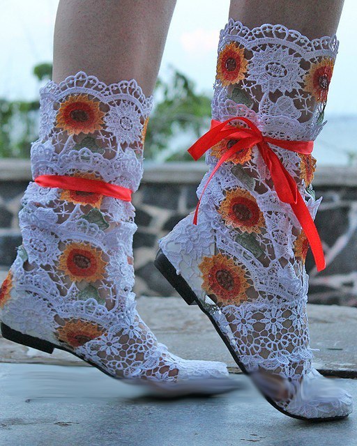 Кака писал(а): Моя мама носит летние сапоги такого плана, как бежевые слева на фото, они очень стильные под короткие шорты и юбочки, она у меня очень стильная и выглядит на 20 лет моложе своего возраста, носить только по вечером и ничего не парко, и не жарко Ой, какие симпатичные  Именно те, что слева. И узор интересный, и форма красивая. Интересно в какую они цену. Правда у нас в продаже видела только такие как справа - ажурные валенки. Да и на людях в основном только такие. Всего пару раз видела более симпатичное что-то - явно куплено не на месте