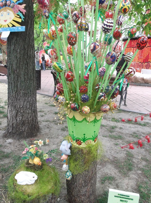 Вчера побывала на фестивале писанок - ими был украшен небольшой скверик в центре города. Впечатлений - масса! Такая красота! Писанки были самые разные - и с куриных яиц, и с гусиных, и с страусиных, и деревянные, и восковые. А украшения и росписи писанок не перечесть - росписные, вышитые, обплетенные бисером, кожей, обмотанные нитками, с квиллингом, с декупажем, с резьбой, с семенами и еще очень-очень много - глаза разбегались! Были представлены композиции с разных городов Украины. Вот мой фотоотчет: