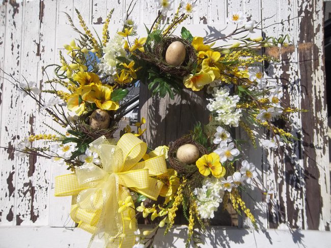 Такие интересные венки! На двери, как рождественские, я бы их не повесила, но где-то в комнате возле праздничного стола вполне возможно. А может и на сам стол, а по средине поместила бы Пасхальный кулич. Вот это б красота получилась!!!