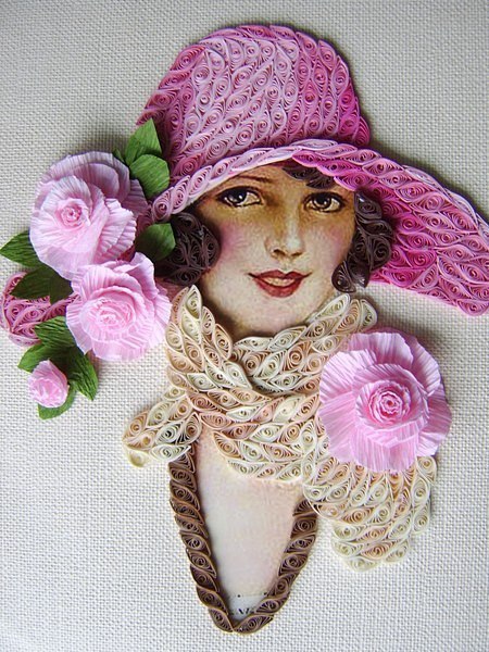 Понравились женские портреты, декорированные бумагой по технике квиллинг. Думаю, получился бы оригинальный подарок, если взять фото девушки/женщины, кому хотите сделать сюрприз - и оформить его вот таким красивым способом.