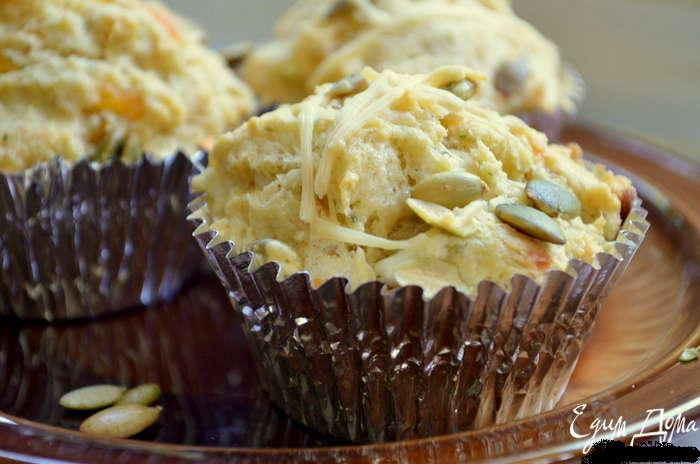 Маффины с тремя видами сыра .. 85 г сливочное масло 2 стол.л. оливковое масло 1/2 стак. сухая хлебная крошка 3 больших яйца 1 2/3 стак. мука 1 1/2 ч.л. разрыхлитель 1/4 ч.л. соль 1/4 стак. вода 1/4 стак. сыр Чеддар, протертый 1/4 стак. крошкой сыр Фета сыр Пармезан, протертый очищенные семена тыквы соль и перец Разогреть духовку до 180 гр. Смешать хлебную крошку, размягченное масло и оливковое масло . Добавить яйца в массу и щепотку соли. Перемешать. Добавим муку,разрыхлитель в общую массу и медленно воду.Добавим сыр Фета и Чеддар,перемешаем.Разложим тесто все по ячейкам формочки маффинов с бумажными стаканчиками. Сверху посыпаем Пармезаном и выложим тыквенные очищенные семена. Поставим в духовку на 25 мин.Дать остыть немного. И забираем на пикник или подаем к столу теплыми. Приятного аппетита.