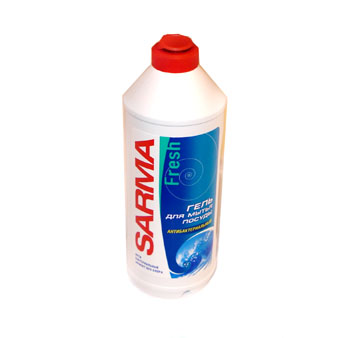 Сарма лучше тем,что это именно гель,при чем антибактериальный без хлора.И расходиться он не быстро и бактерии на руках и на губке убивает.
