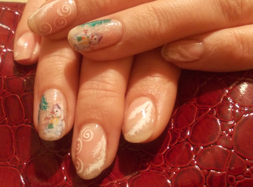 Мне кажется, что наклейки, сужу по рисунку. Как мне кажется нарисовать такого снеговика на ногтях нереально.