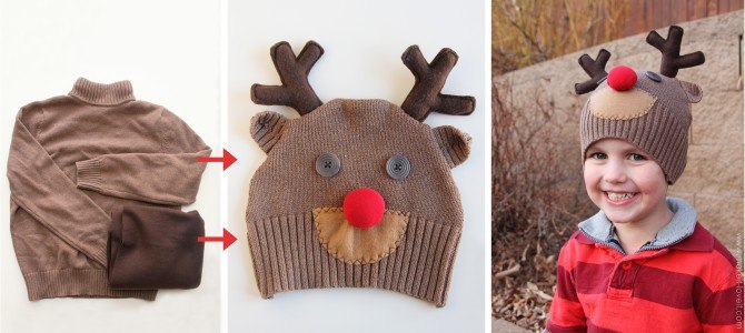 А мне понравилась шапочка оленя, ее можно сделать самой из старого свитера, не знаю хорошо ли получится, но не сложно уж точно.