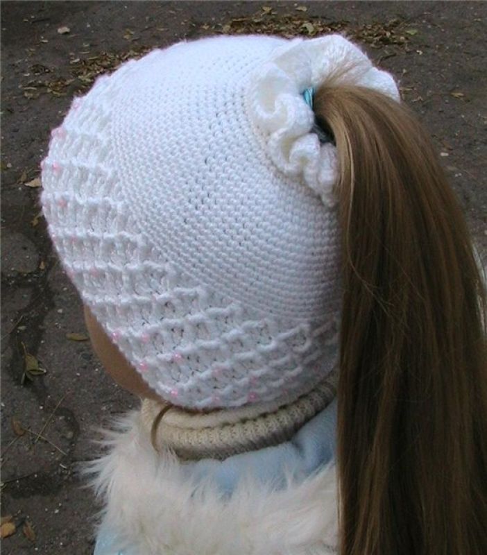 Смотрите какая интересная шапочка, что можно хвостик высунуть наружу.