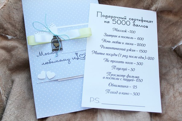 Нюфка писал(а): Еще одна идейка, сделать самому либо же где-то заказать для любимого на праздничный "ужин". Нюфка, Ваша идейка самая оригинальная. Прочитала открыточку-- смеялась. Очень прикольный вариант праздничной валентинки ))