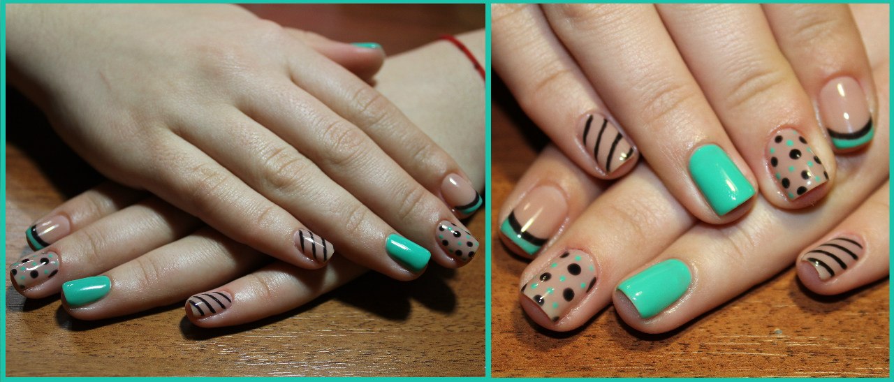 Очень классный френч на последнем фото, мне кажется, что если взять вместо белого какой-то яркий лак другого цвета будет очень сочно и по летнему, идея очень понравилась, возможно и себе попробую нарисовать. Мне еще нравятся просто ноготки в горошек, только цвета на фото не очень подобраны