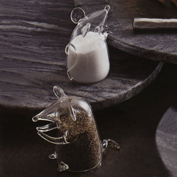 А я стеклянные бутылки не использую совсем, если нужно налить стекло, то пользуюсь банкой, например для молока. Мне очень понравились солянка и перечница в виде мышек, такие украсят любую кухню