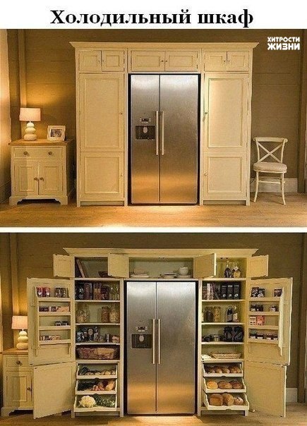 Мне очень понравился такой холодильник вмонтированный во многофункциональный шкаф, очень классно,я бы такое себе хотела, только в кухню не влез бы)