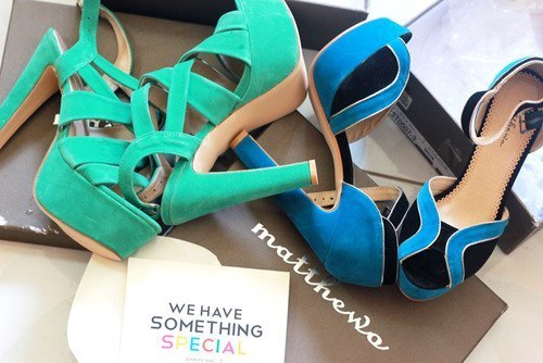 Под коктельное платье можно обуть что-то яркое, например такие босоножки под платье в тон или в одной цветовой гамме, мне такие цвета очень нравятся.