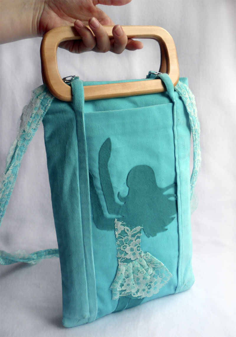 а мне джинсовые сумки не нравятся если видно что они перешиты из джинсов. Я предпочитаю чтобы сумка выглядела загадочно - никто не мог понять где я ее взяла)А вот из джинсов как-то сразу понятно, тем более что друзья сразу узнают в ней твои джинсы) Я из джинсов люблю больше шорты делать) ВОт интересная сумочка хенд-мейд. Необычная форма, ручка...красивый рисунок.