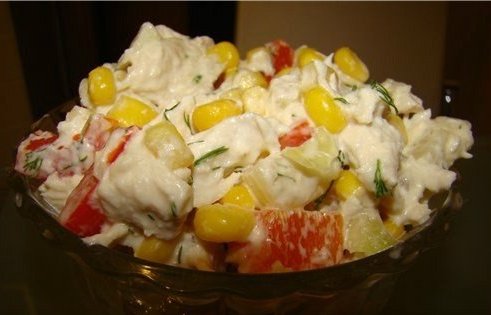 Аврора писал(а): Порезано было кубиками, заправлено майонезом, очень вкусно. спасибо, приму к сведению