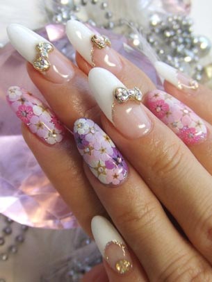 Мне в посте Танюшки наиболее понравилась 2 картинка, цветочки красивые, но бантики там уже лишние, и я бы не стала делать френч, просто накрасила бы ногти однотонным лаком, а безымянные пальцы оставила бы с цветочками.