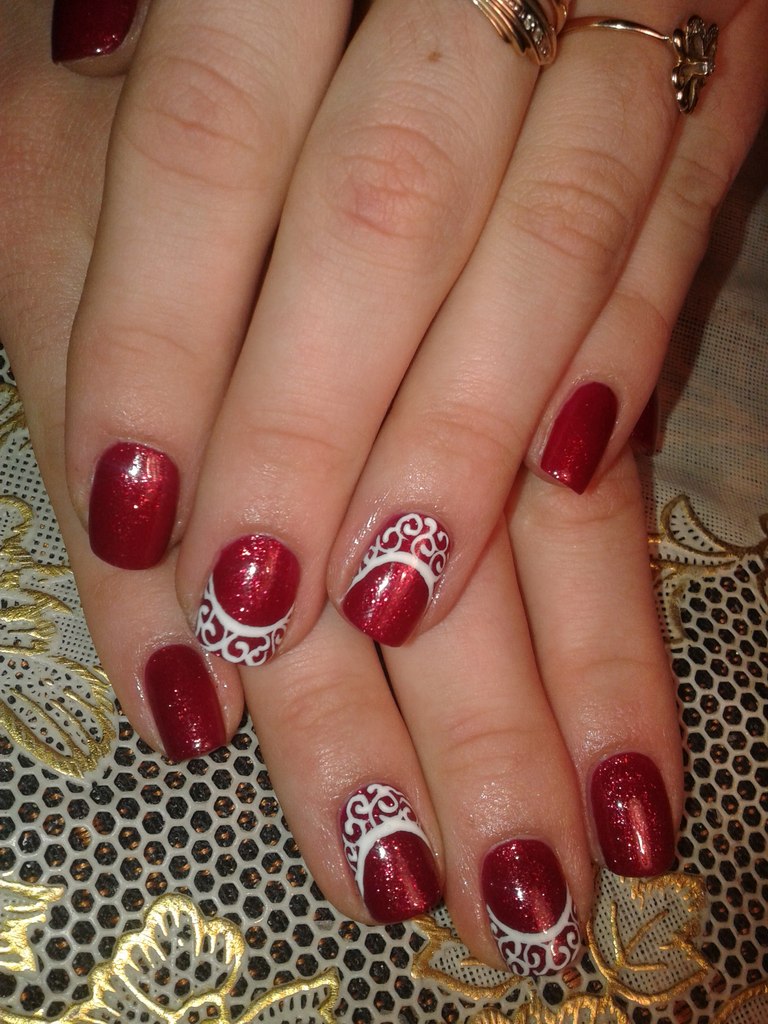 annamadam писал(а): Мне на новый год захотелось чего -то темного с узором))) Вот такой маникюр у меня был. Простенько і красиво, я теж люблю, коли один тон і виділені 2 нігтики, ось так я робила, наприклад)