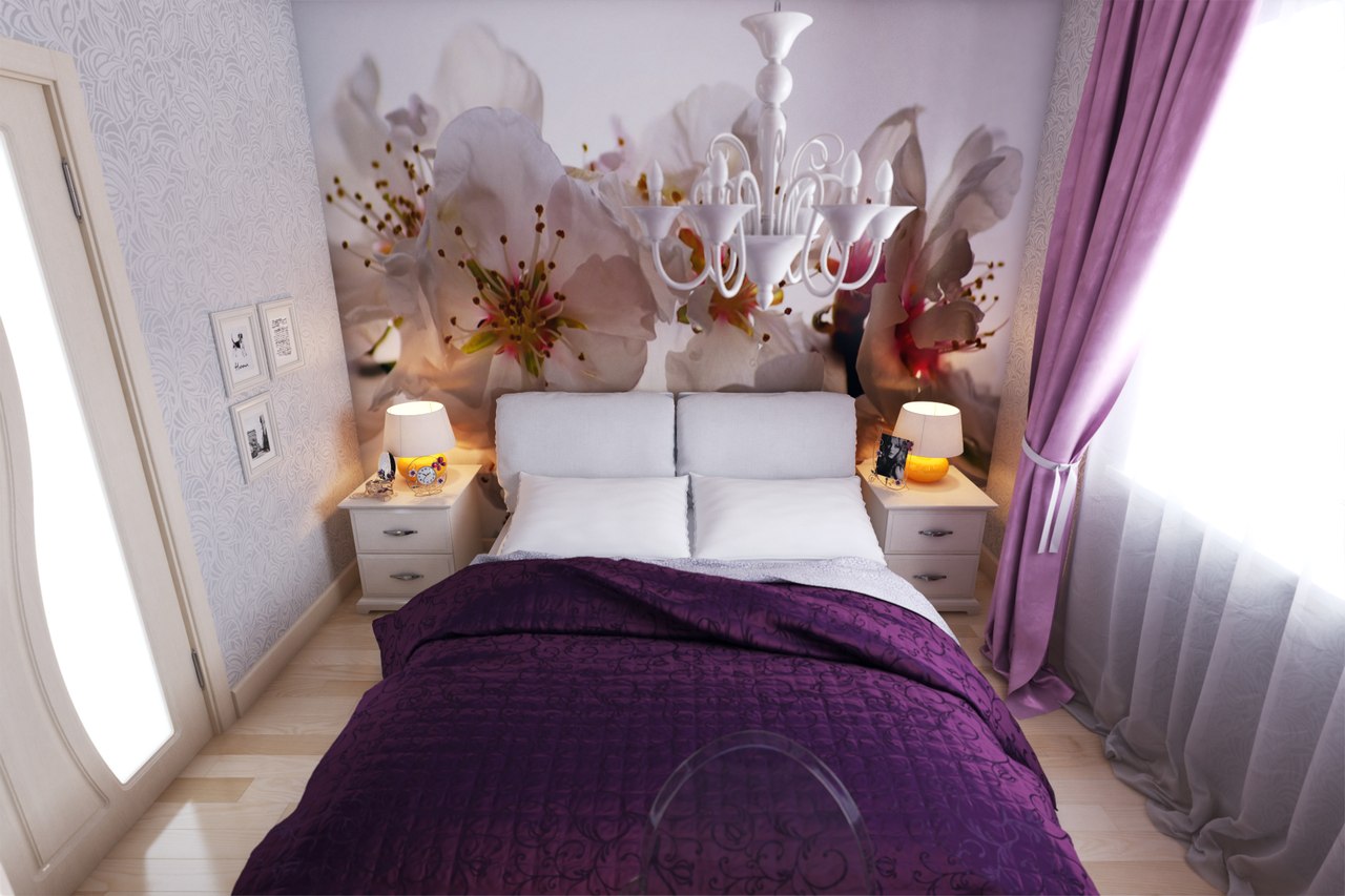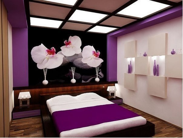Вот это да!!! Какая красотища. И фиолетовая спальная мне дико нравится. Но и светлая с огромным цветком в изголовье ничем не уступает! Даже не знаю, какую бы выбрала...