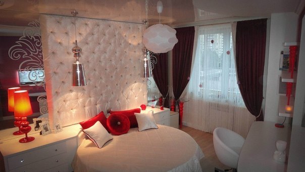 Нет, мне не нравятся круглые кровати и эти мягкие стены сзади, как в психбольнице, туда что головой биться? Ну и кровать рассчитана на двух небольших людей, а я люблю звездой спать, так что ж мужу на полу стелить? Вот такие спальни нравятся мне, просторно и много места