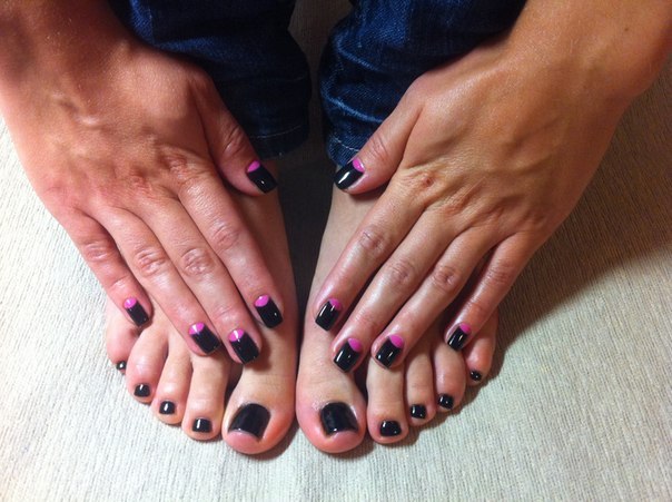 Мне нравится френч на ножках и ручках, но на ножках украшаем только один большой ноготь, а не все, так педикюр будет выглядеть аккуратней и интересней.