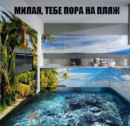 Шикарная идея, только женщину жаль))) Я тоже нашла отличный наливной пол, только в квартиру на порог и ты на море, даже зимой))