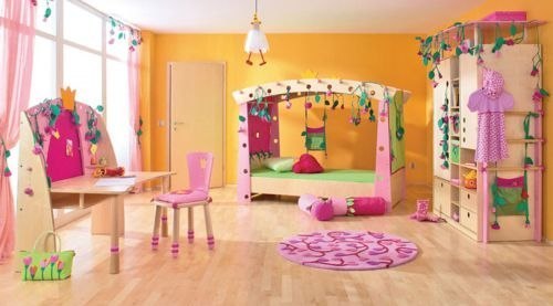 Красный, бордовый цвета возбуждают психику ребенка, повышая, как правило, кровяное давление и вызывая головные боли, кроме того, их наличие в детской комнате может вызывать ночные кошмары. Синий цвет действует угнетающе на нервную систему, вызывая ослабление пульса, помимо этого он снимает мускульное напряжение и притупляет болевые ощущения. Иногда этот цвет может вызывать усталость и депрессию. В детской комнате синий цвет может присутствовать в небольших дозах. А вот присутствие желтого цвета в детской комнате оказывает положительное влияние абсолютно на все аспекты жизни ребенка. Это прекрасный цвет для оформления комнаты для малыша. Он активизирует деятельность мозга, повышает настроение, увеличивает скорость восприятия, остроту зрения. Он противопоказан лишь в тех случаях, если ребенок подвержен перевозбуждению или невралгии. Зеленый цвет способствует нормализации кровяного и глазного давления, стабилизирует пульс и дыхание, увеличивает остроту зрения, помогает концентрации внимания. Кроме этого преобладание зеленой части спектра в детской комнате способствует хорошему настроению, благотворно влияет при бессоннице. об оранжевом цвете, так любимом всеми малышами! Этот цвет благотворно влияет на пищеварительные органы, усиливает аппетит, но его изобилие в детской комнате вызывает у ребенка переутомление и порой даже головокружение. Поэтому в детской комнате оранжевыми могут быть лишь несколько игрушек. Идеально для детской комнаты подходят пастельные цвета: бледно-желтый, бледно-голубой, бледно-зеленый или розовый. Они освежают комнату, создают хорошее настроение. Поэтому дизайнеры рекомендуют стены детской комнаты окрашивать в разные цвета. Например, солнечная стена может быть голубоватой или зеленоватой, чтобы снизить яркость света и создать ощущение прохлады, стена, которая находится в тени, может быть персиковой, желтоватой или кремовой. А для стимулирования творческой деятельности ребенка японские дизайнеры, например, рекомендуют располагать детские рисунки прямо на стенах. К тому же этот фактор придаст комнате индивидуальный, неповторимый стиль.