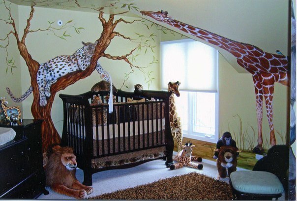 А как вам такой "зоопарк" в дизайне детской комнаты? Я вообще положительно отношусь к разрисованным стенам в детской, но для меня это уже как то слишком.