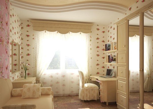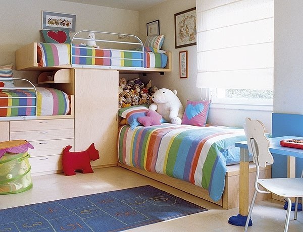 А вот комнатка попроще для двоих деток, кстати натяжные потолки вредны для здоровья, точнее испарения, так что я бы в квартире не советовала делать такое, тем более в детской комнате Вложение:
